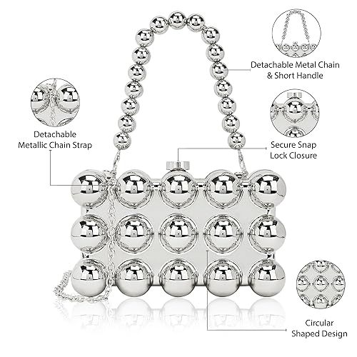 Silver-toned textured box clutches Has wrist loop and sling chain 1 main compartment with click closure PU To remove dust, wipe your bag with a clean, dry cloth. When you’re not using it, keep it wrapped up in a dust bag. Stuff your Bag to maintain its shape.